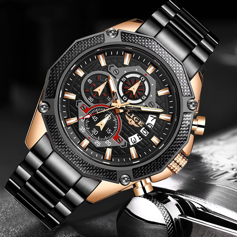 2019 New LIGE Fashion Brand Mens Watches Full Steel Business Quartz Clock Military Sports Waterproo